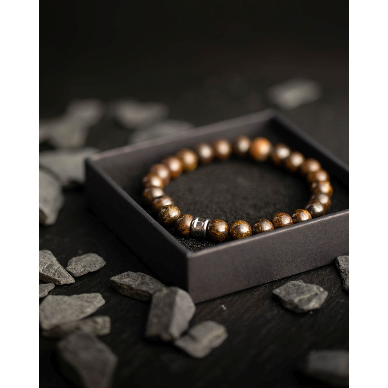 Dit is een Gemini Alpha Brown S mannenarmband. Deze heeft een bronzite steen.