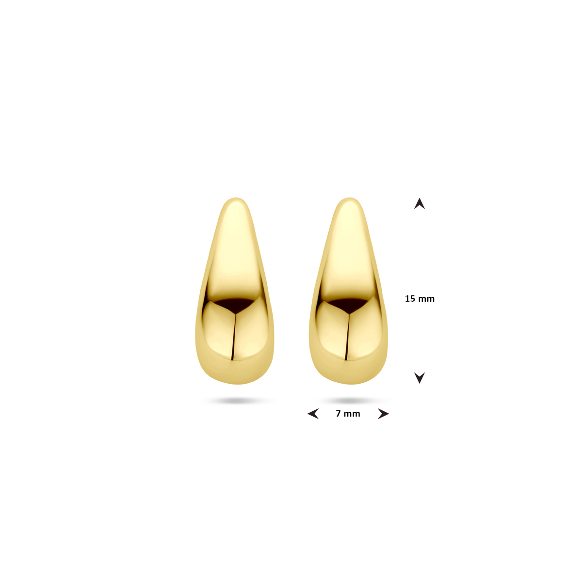 14k Geelgouden oorknoppen uitgevoerd in de vorm van een druppel. De oorknoppen hebben een afmeting van 15.5x7mm.