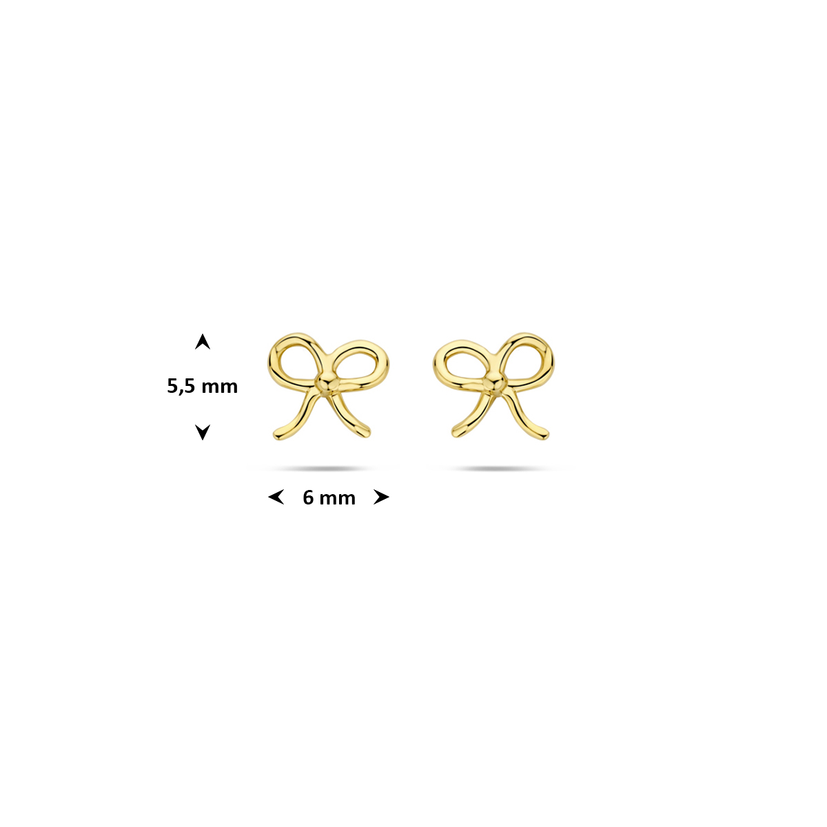 14k oorringen in de vorm van een strik. De oorknoppen hebben een afmeting van 5.5x6mm.