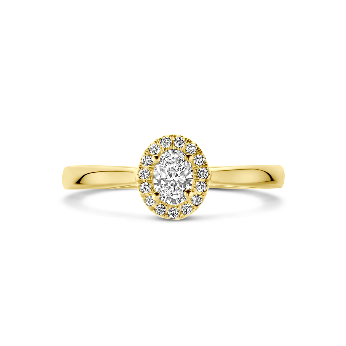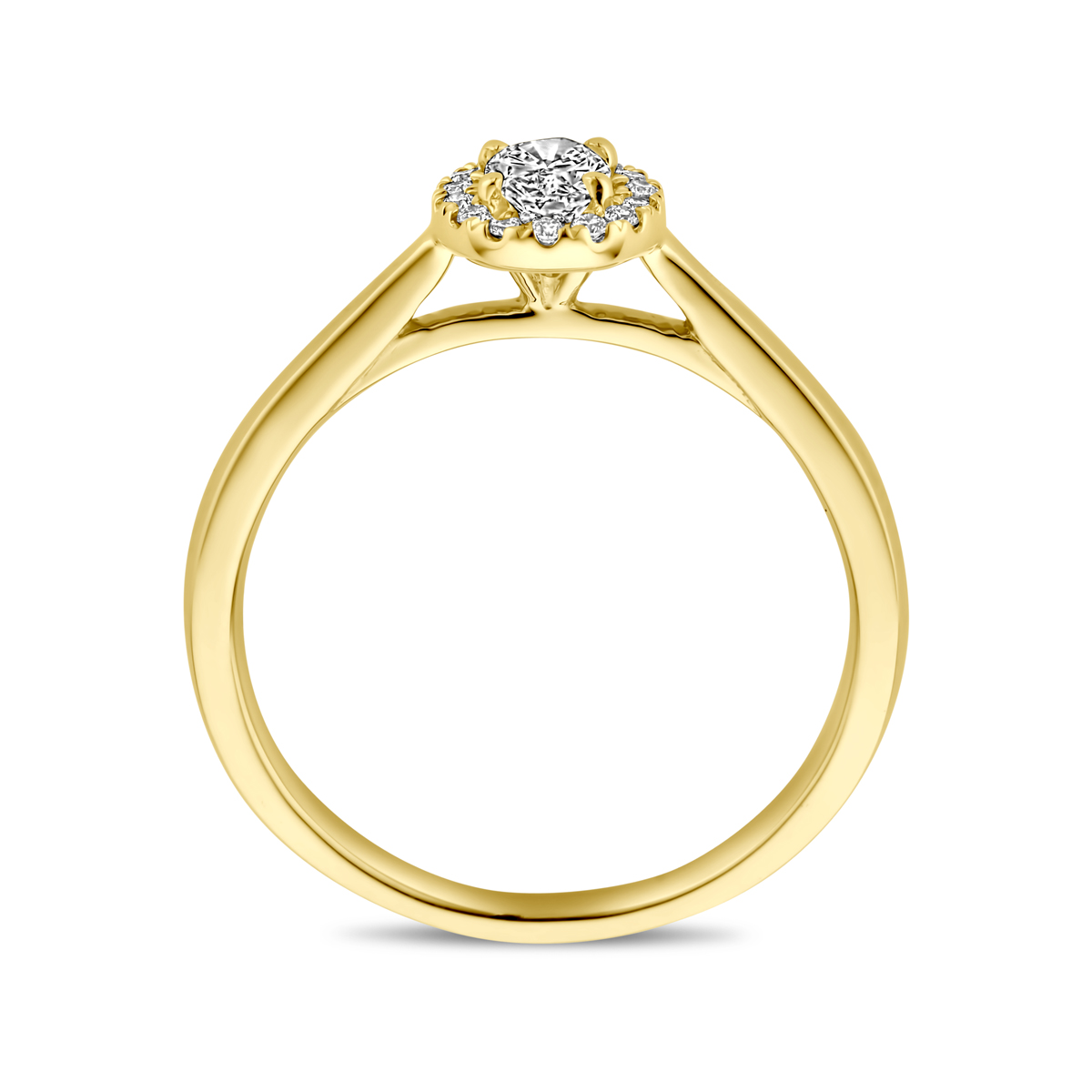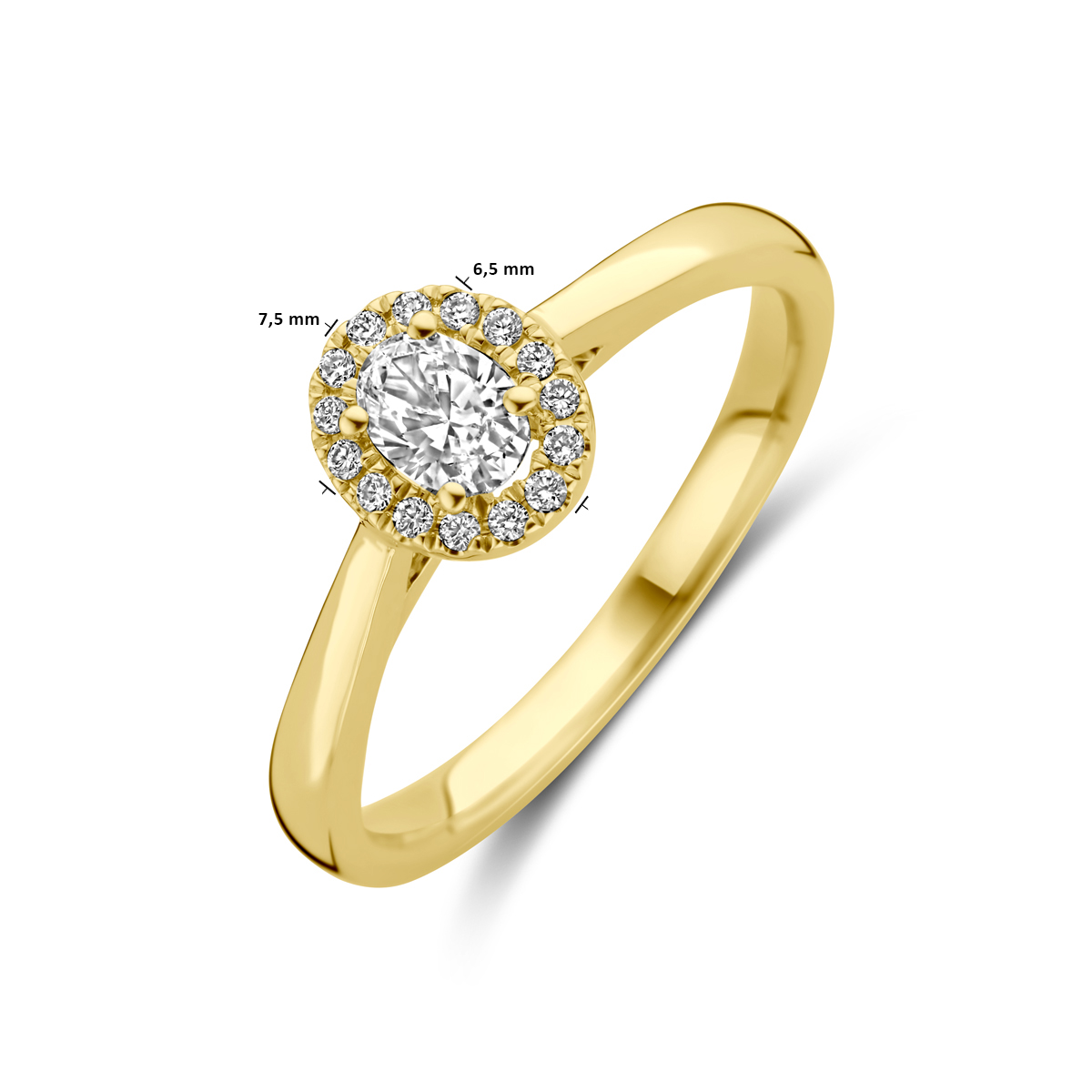 14k Geelgouden ring uitgevoerd met lab grown diamant. De ring heeft een afmeting van 7.5x6.5mm. Het totale diamantgewicht is 0.32ct. Lab grown diamanten zijn diamanten die ontstaan in een laboratorium.