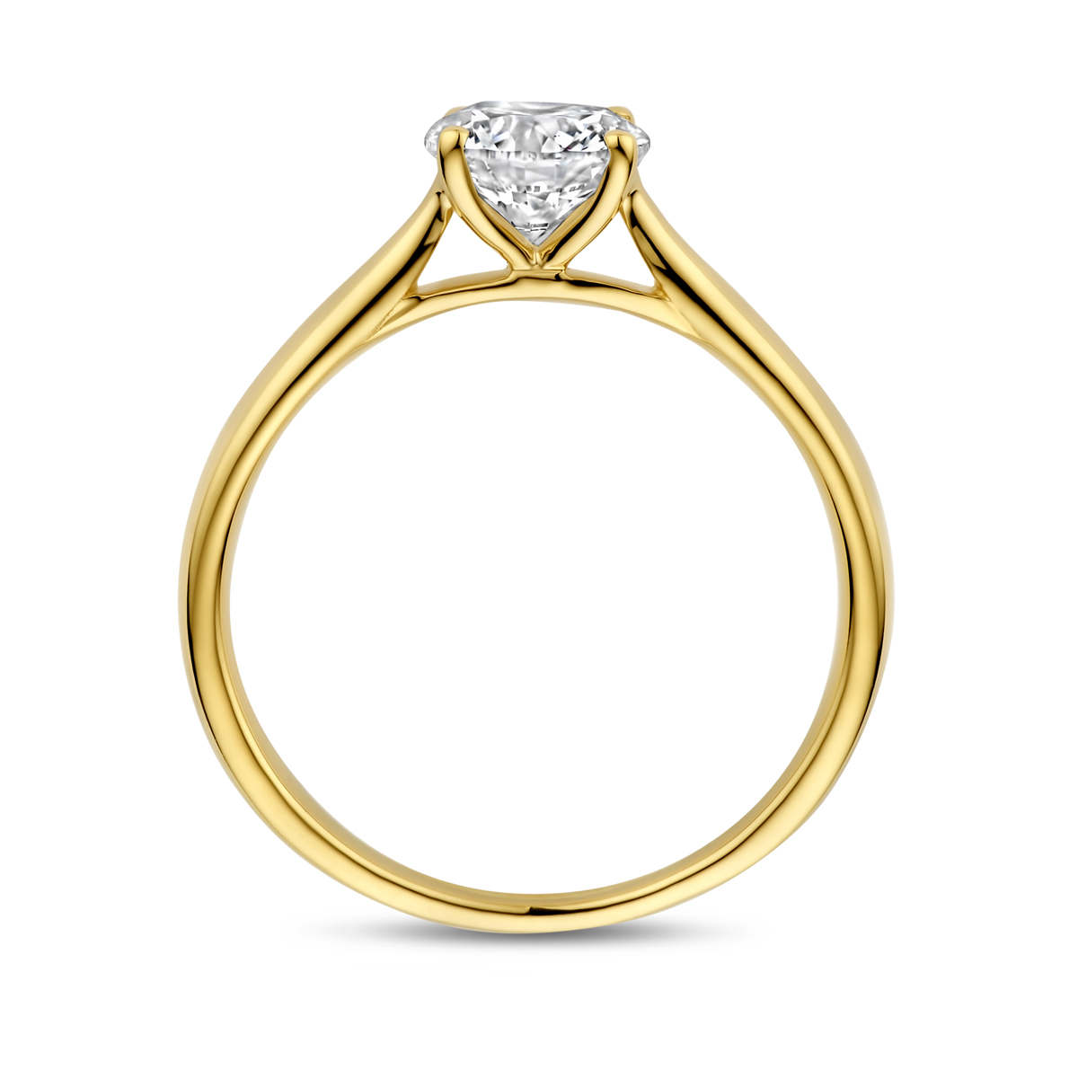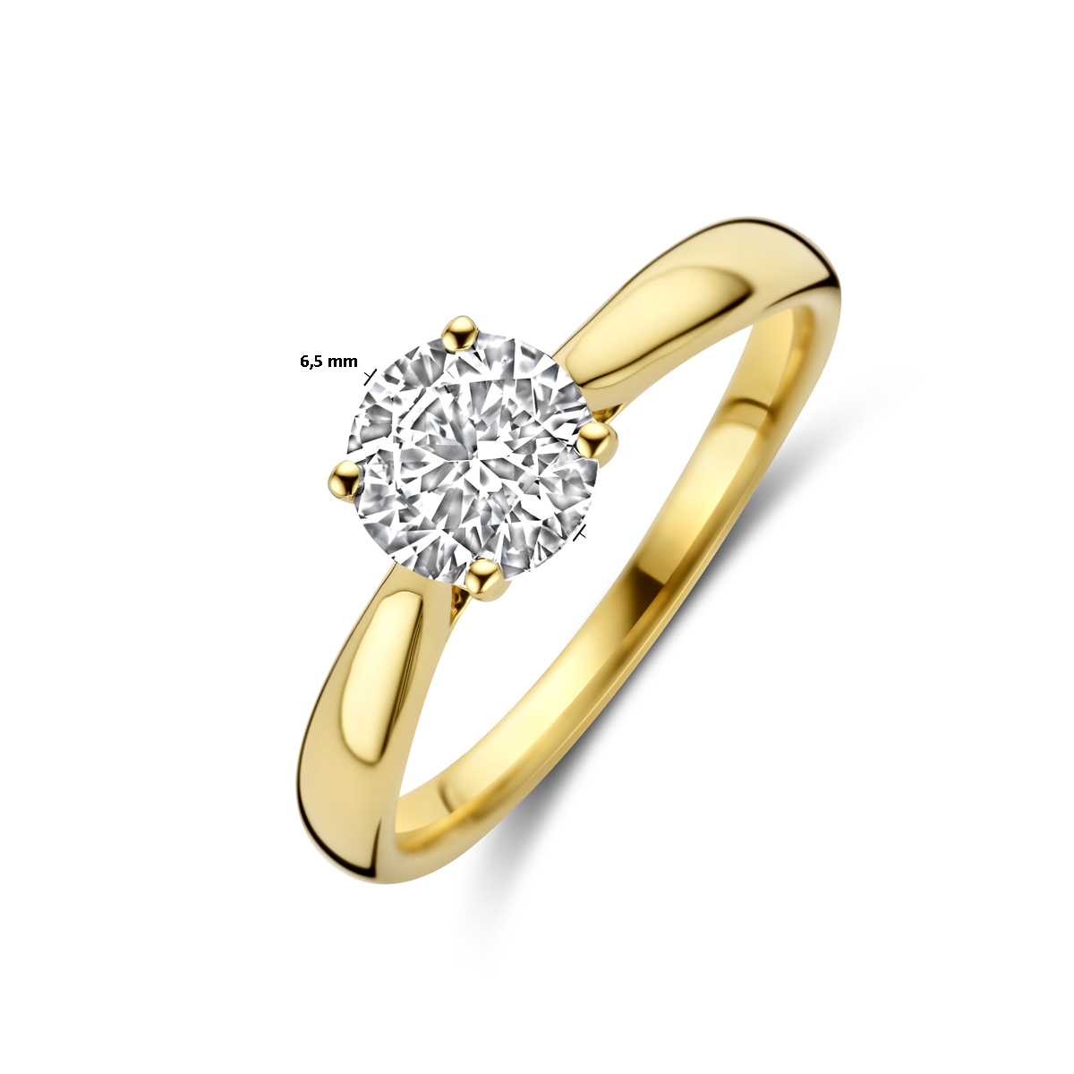 Ring 14 kt uitgevoerd met lab grown diamant. De ring heeft een breedte van 6.5mm. Het diamantgewicht is 1.06ct. Lab grown diamanten zijn diamanten die ontstaan in een laboratorium.