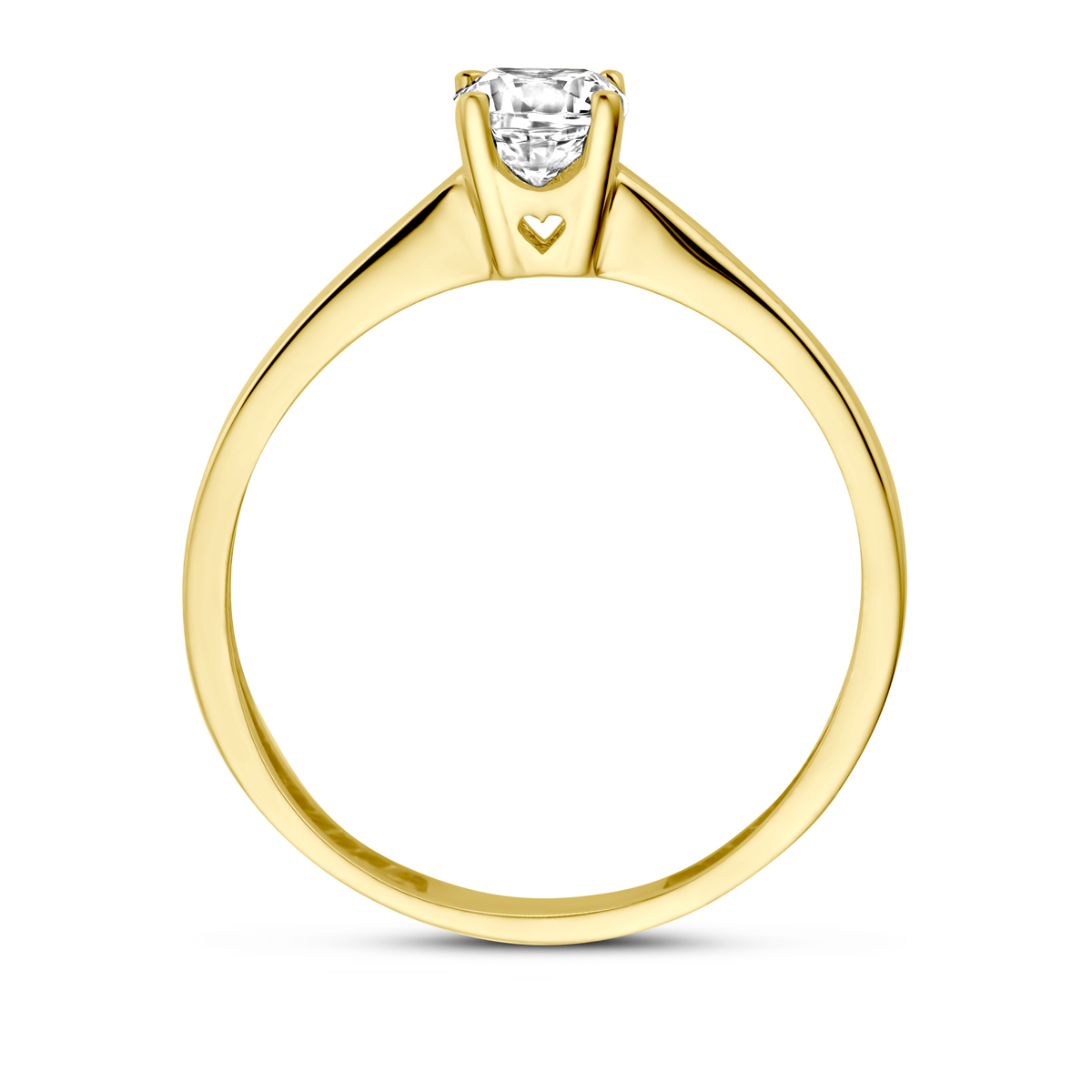 Ring 14 kt uitgevoerd met zirkonia. De ring heeft een breedte van 4.5mm.